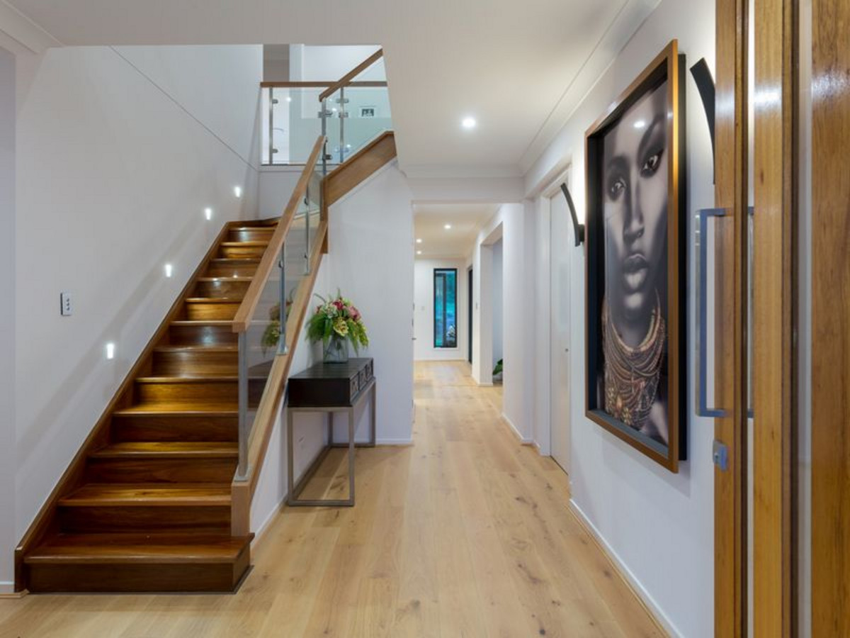 The resort-style backyard is an outdoor oasis bordered by large shade trees and features a sparkling modern pool, lush tropical gardens, timber pool deck and thick grassy level lawns for the kids to kick a ball around. Parents will be able to keep watch on all the backyard action from the downstairs living areas or from the comfort of their own private undercover balcony with a ceiling fan off the master bedroom. Located on the top floor, the master bedroom includes a stunning feature wall, luxurious contemporary ensuite with island bath, large shower, double vanity, mosaic feature tiles, separate toilet and two large walk-in-robes. The remaining bedrooms, all with walk-in-robes and one with its own ensuite, are also located on the upper level along with an additional bathroom. There is also a second living/media room providing plenty of space for the whole family to relax and unwind both upstairs and downstairs. Other features of this impressive and understated luxury family home include ducted air-conditioning throughout, home office near the front entrance, storage under the stairs and lock up garage with internal access.