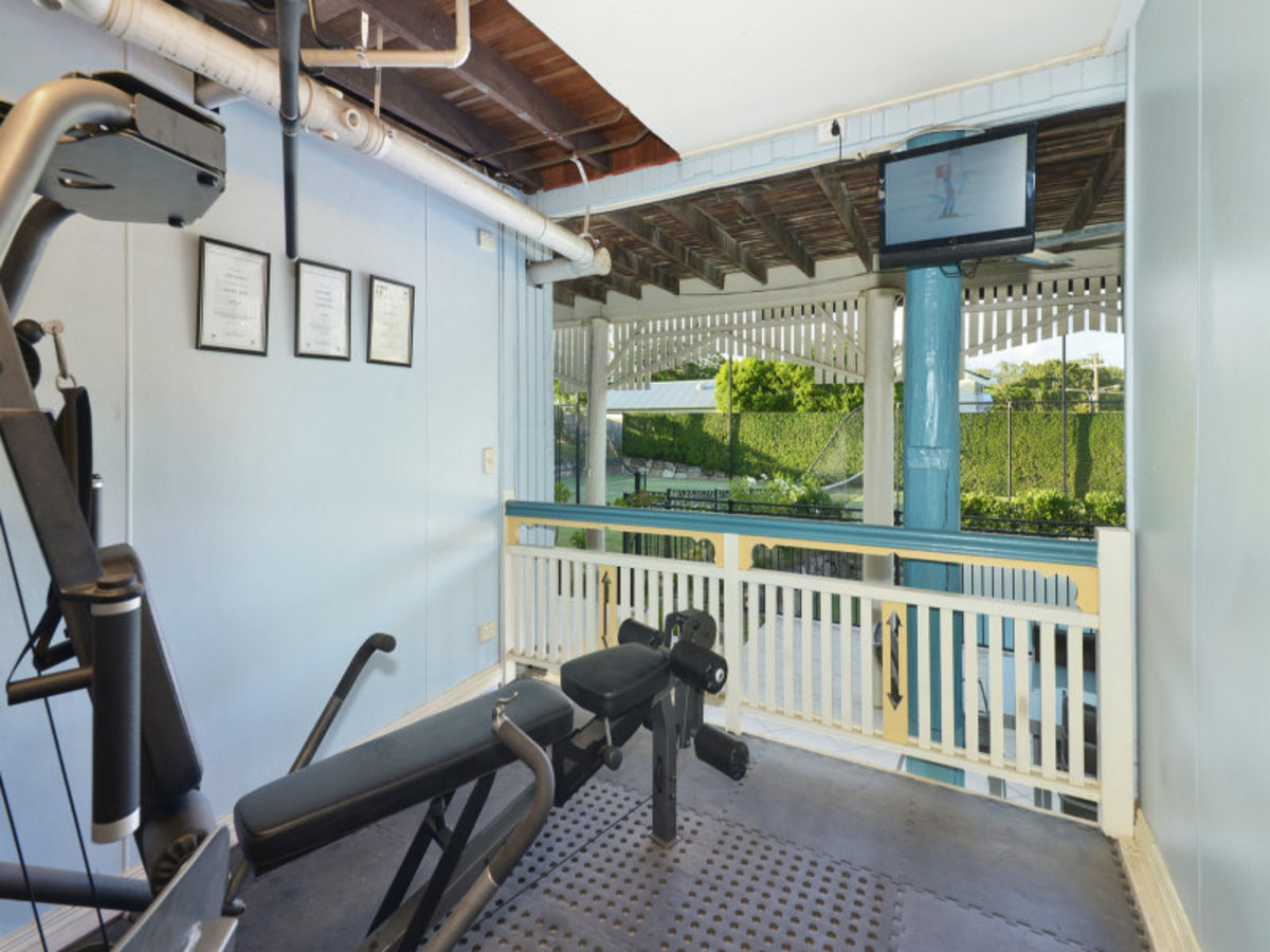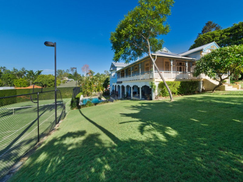 The formal living and dining rooms form a suitably grand introduction and display all the fine original finishes and fixtures that are expected of a stately home of this era. The features, which include VJ walls, impressive 13 foot high ceilings and carved picture rails are on show throughout the rest of the main living level which includes the spacious family room (complete with fireplace) and a casual meals area. The kitchen is similarly in keeping; its traditionally profiled cabinetry working in well with the high quality European appliances and granite bench tops. Another fundamental design element of the traditional Queenslander - the deep wrap around veranda - also features prominently, creating an ideal space for alfresco living along with encouraging natural breezes throughout the home by way of multiple sets of French doors.
