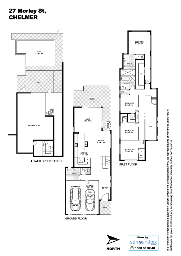 The ground floor provides a secondary living zone geared almost exclusively to entertaining with a cellar, wet bar, home entertainment media zone and room for billiards or simply relaxing with friends. It flows out on two sides to a terrace which then leads down to the pool, heated spa, fenced yard and pontoon beyond. A grand central staircase forms the centrepiece to the home, linking the three floors as well as acting as an integral conduit of light and air. Furthermore, its striking design of timber, glass and stainless steel introduces a secondary purpose; that of a fully functioning art installation that can be viewed and admired from any angle. So as not to overwhelm, the palette has been kept largely all-white with superior natural elements including stone, steel and rich timbers used simply to highlight and enhance. Chosen with a restrained hand, these finishes create a feeling of quiet exclusivity which is further heightened by the grand proportions and generous use of conceptual lighting. Upstairs, there are three large children's bedrooms (each with private garden views and walk-in wardrobes), as well as the family bathroom that has a bath, separate toilet and has been finished in luxurious Italian porcelain. The master bedroom is also located here and enjoys stunning river views as well as its own ensuite and walk-in wardrobe. There is a powder room, dual car garage, plentiful extra storage, ducted air, security, a vacuum system and smart wiring.