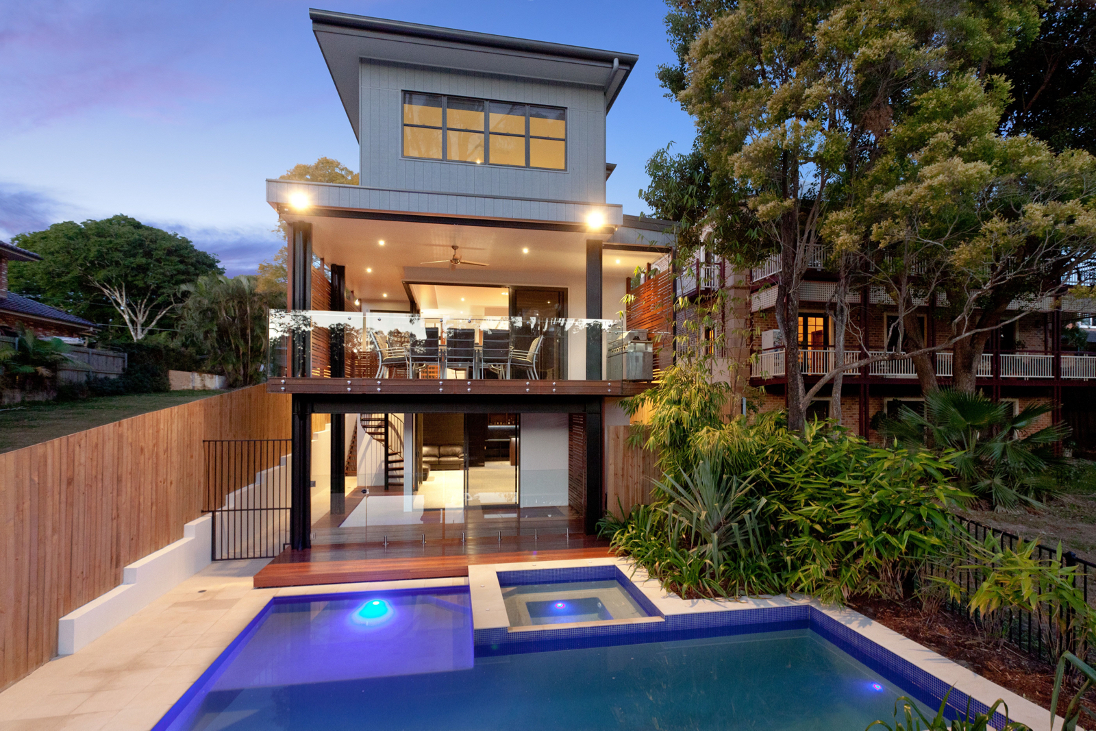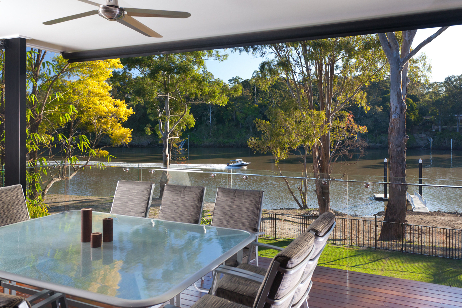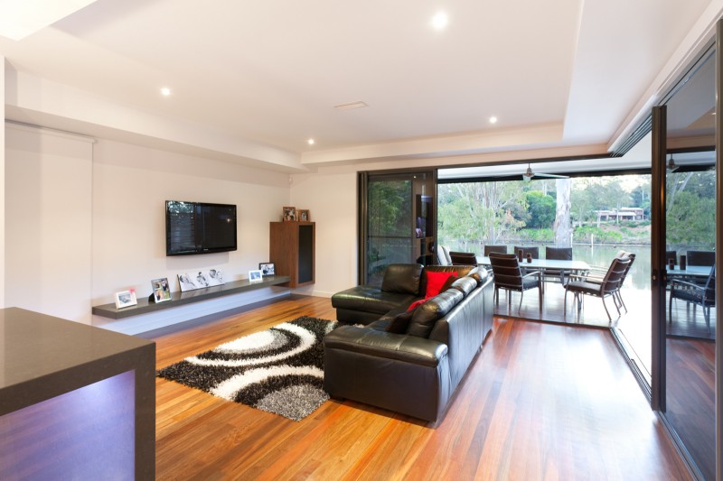 Prestige riverfront living is back and better than ever with this newly finished, contemporary residence built over three commanding levels atop 794sqm of tightly held real estate with pool, boat ramp and pontoon. A statement in cutting-edge style it showcases fabulous design features that smoothly impress while also adding to the executive lifestyle and enviable entertainment options on offer. This is apparent from the outset, with its sleek facade of cedar panelling, muted tones in Alucobond and contemporary finishes forming a most impressive first impression.