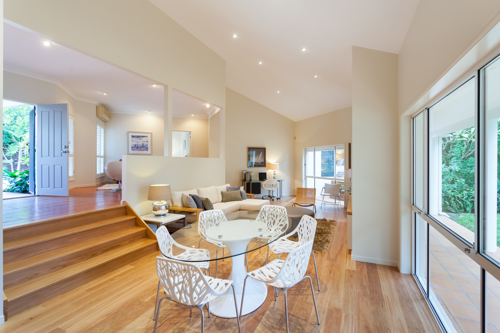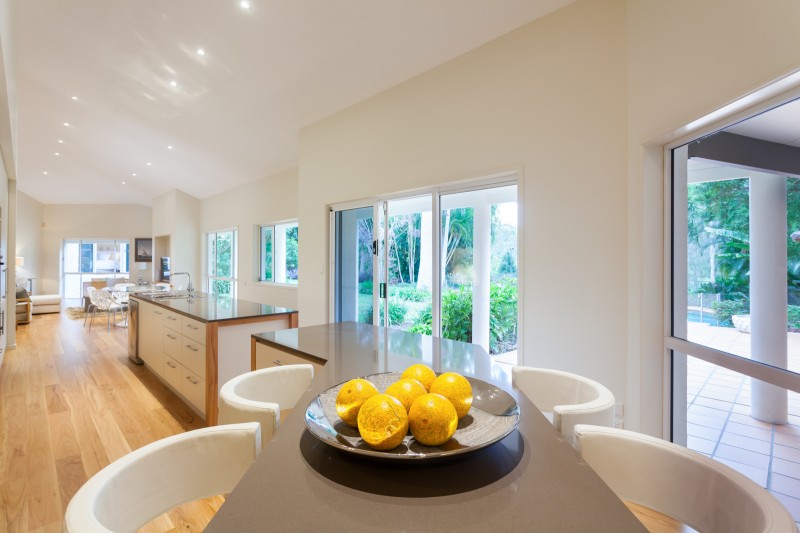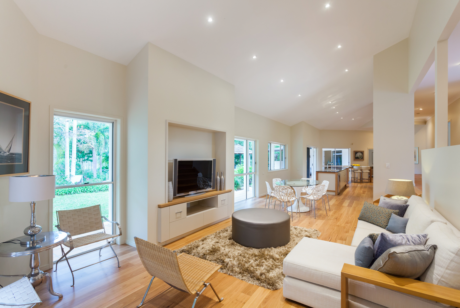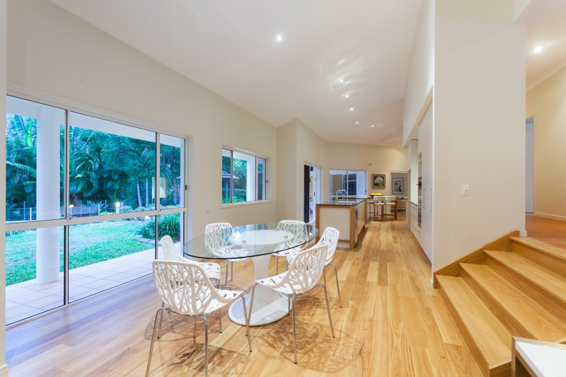 The house builds upon the feeling of an exotic escape with soaring ceilings, plentiful glass and a effortless indoor-outdoor flow creating plantation-style living which is further enforced by northerly views of the surrounding sub-tropical gardens, the tennis court and the natural landscape beyond.