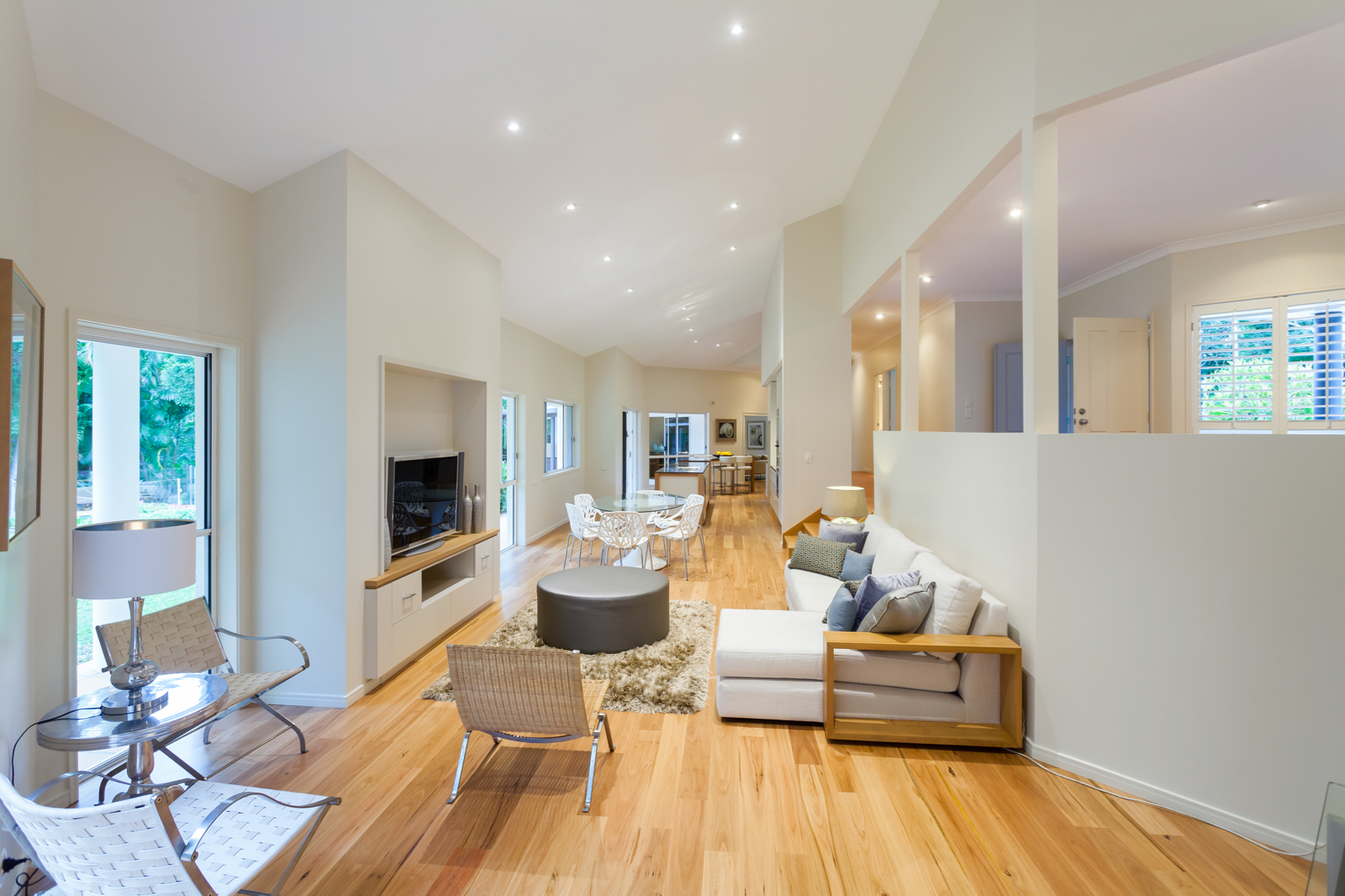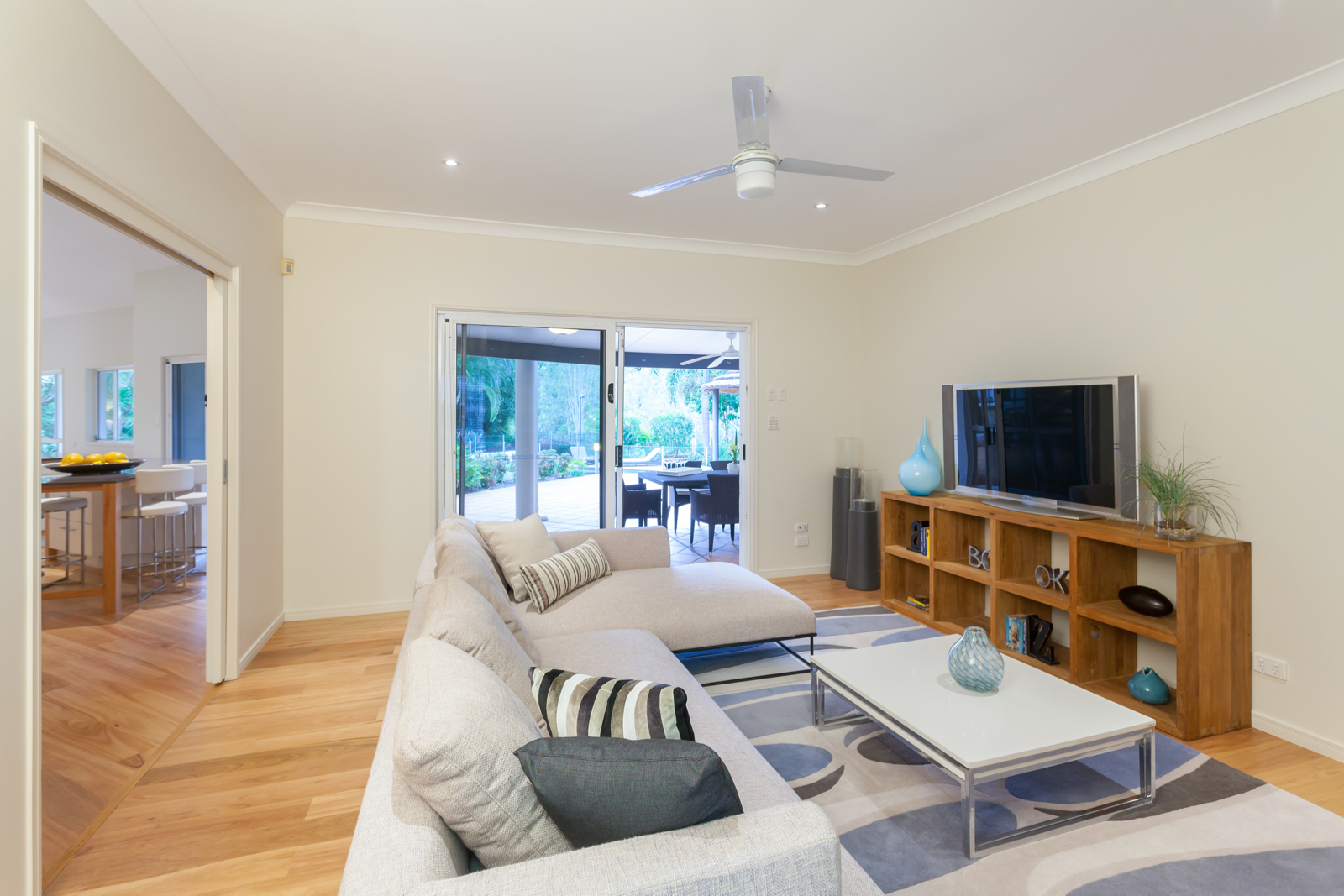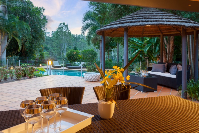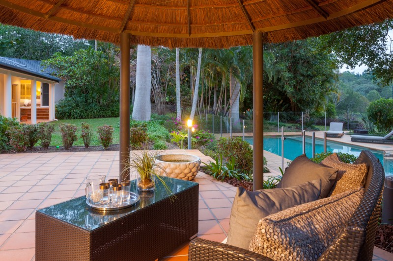 The house builds upon the feeling of an exotic escape with soaring ceilings, plentiful glass and a effortless indoor-outdoor flow creating plantation-style living which is further enforced by northerly views of the surrounding sub-tropical gardens, the tennis court and the natural landscape beyond.