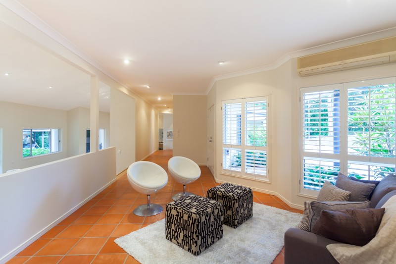 The bedrooms have been split into two wings, with one containing two large rooms, a rumpus and a chic white and navy bathroom, all of which can be entirely closed off from the rest of the home making it perfect for young children and teenagers alike. The second wing contains an ensuited guest bedroom and the master suite (complete with a walk-in wardrobe, ensuite and terrace access). Both these bathrooms have been fully renovated to suit the relaxed style of the home with neutral tones and quality fixtures including rainshower heads. There is a powder room, home office, formal entry foyer, security, a storage room and newly finished laundry with direct access to a drying courtyard.